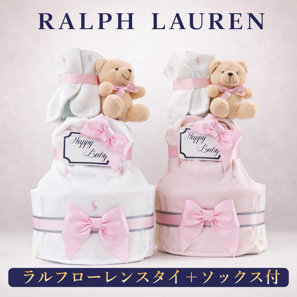 おむつケーキ 女の子 ブランド ラルフローレン ベビー 出産祝い オムツケーキ ギフトセット スタイ 靴下 おしゃれ オムツタワー 送料無料 豪華 赤ちゃん 3段 ぬいぐるみ