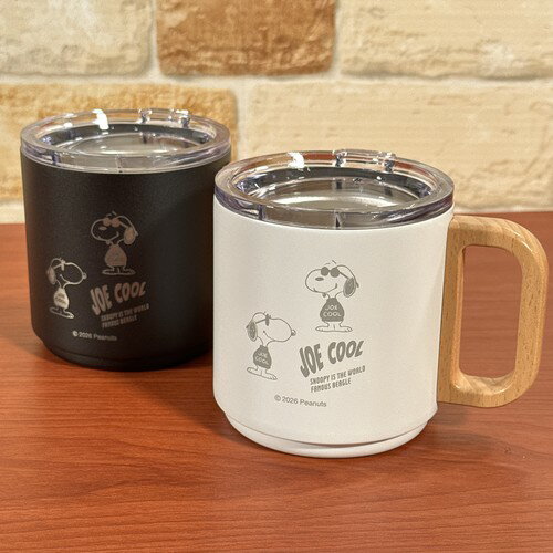 送料無料 ピーナッツ/スヌーピー 蓋付きステンレスマグ モノトーン ジョー・クール SPIK-470-1 /ホワイト ブラック 木製取っ手付き 木ハンドル フタ付き