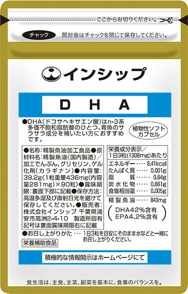 DHA(ドコサヘキサエン酸) 436mg×90粒 脂っこい食事が好きな方に!魚のサラサラ成分で「考える」「見る」をサポート! 約30日分サプリメント DHA インシップ
