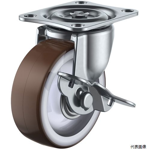 ユーエイ アングル 自在 キャスター ゴム 車輪径100mm ストッパー付き Sタイプ SA-DS型 取付寸法20×21、16 SA-100WS 1個 ▼278-3495